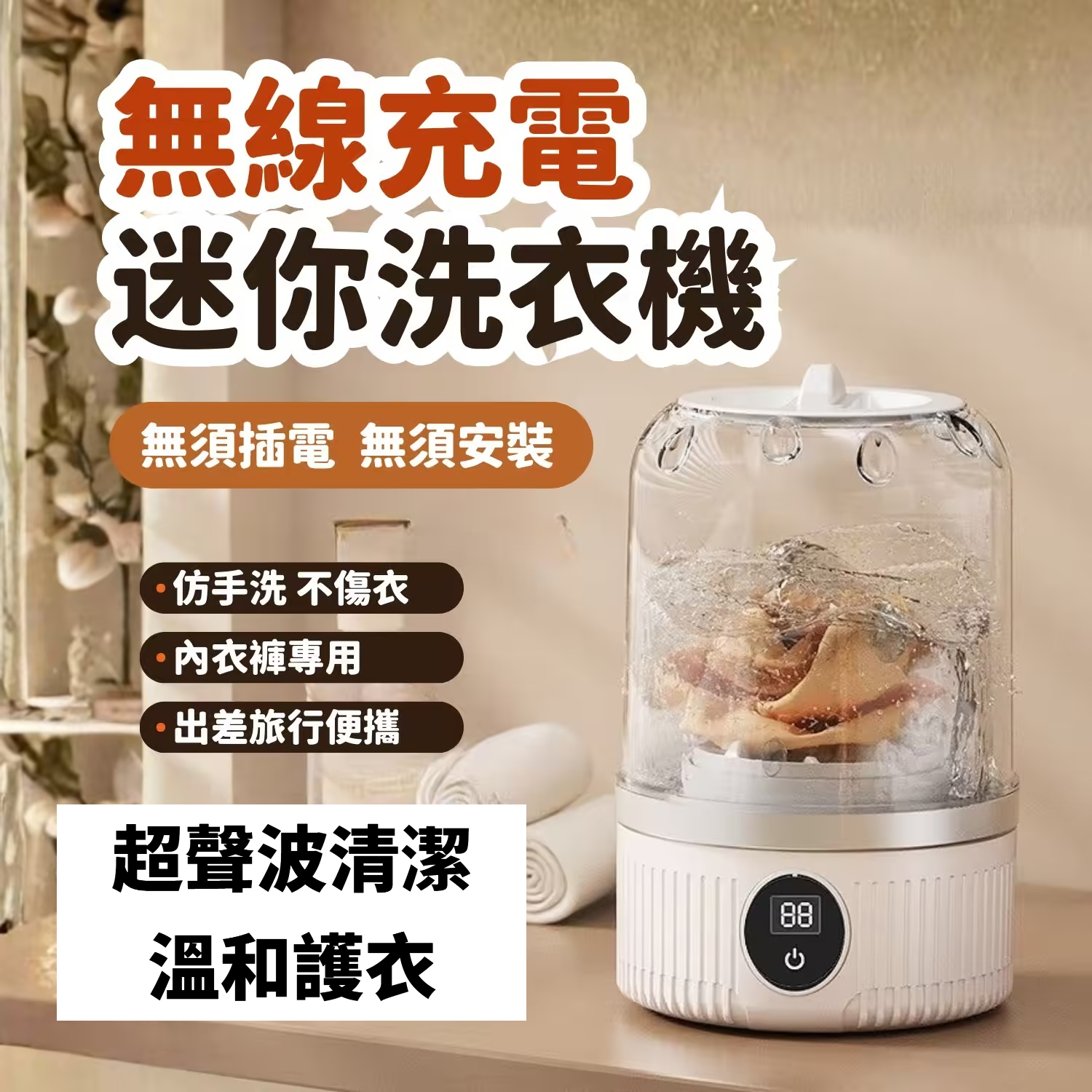 第5代超聲波內衣清洗機 無線便攜好收納,高類震動深層除菌去味,溫和護衣不傷布料,分離清洗更衛生,居家必備